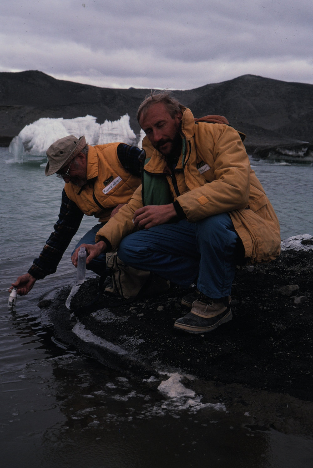 DescriptionRichard Castenholtz (Oregon) and Warwick Vincent sampling at Bratina Island.DepictsRichard CastenholtzWarwick VincentPhotographerJosie McNeeSeason1989-1990Date TakenBetween 1st January 1990 and 31st January 1990OriginalSlideNo. People2-5LocationBratina IslandGeolocation[1] Position
