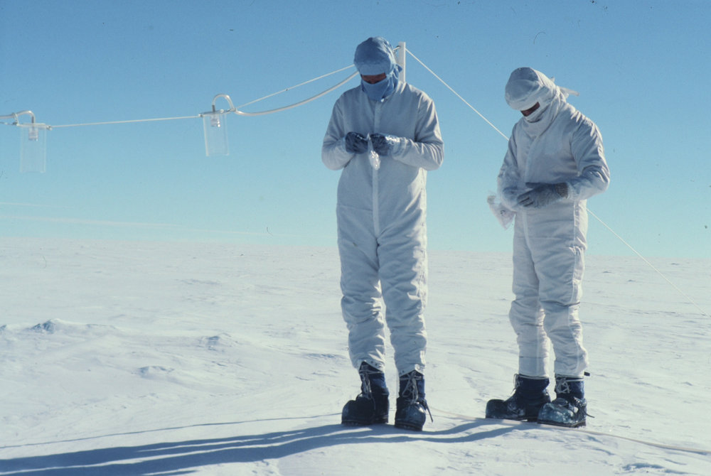 DescriptionChad Dick and D. Wylie Collecting Filters in Clean Suits.DepictsChad Dick D WylieProgrammeK093EventK093-9091Season1990-1991Date Taken1990-1991 SeasonOriginalSlideNo. People2-5LocationEast Antarctic Plateau
