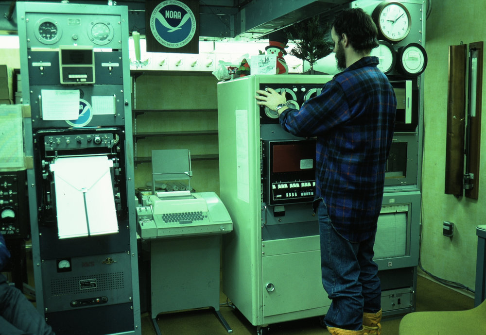 DescriptionLloyd Anderson in Met Lab, Pole station.DepictsLloyd AndersonPhotographerIan PatersonSeason1976-1977Date Taken1976-1977 SeasonOriginalSlideNo. People1LocationSouth Pole StationGeolocationPosition:StreetView:&enabled=0&fov=90&heading=0&pitch=0&zoom=6
