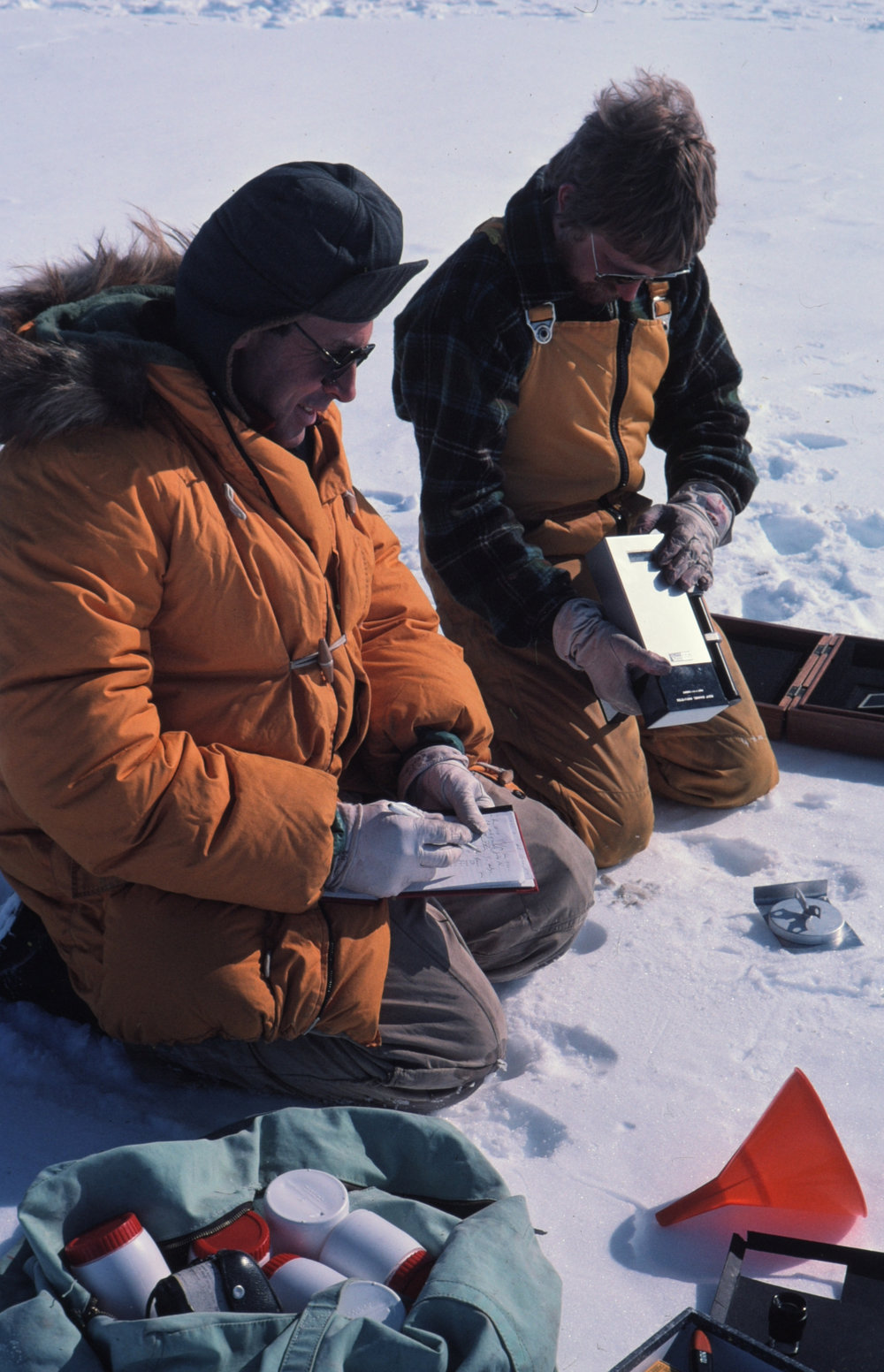 DescriptionIan Thomas (PEL), Doug Martin with Radiometer Recording for Landsat.DepictsIan Thomas Doug MartinPhotographerKim WesterskovProgrammeK027EventK027-8283Season1982-1983Date Taken1982-1983 SeasonOriginalSlideNo. People2-5