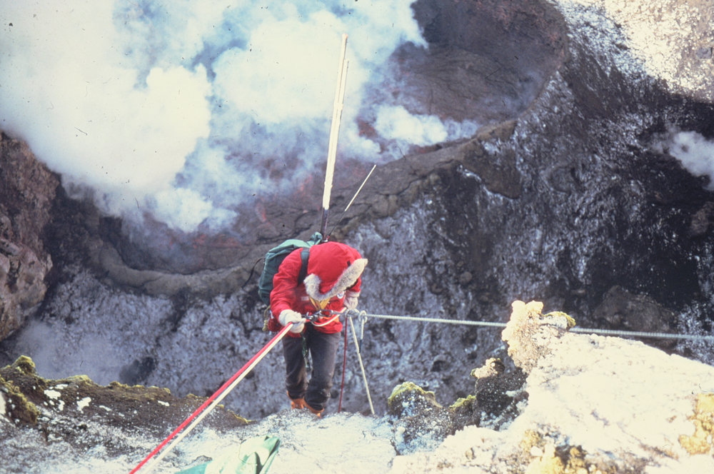 DescriptionGiggenbach entering inner craterDepictsWerner GiggenbachPhotographerColin MonteathSeason1978-1979Date TakenBetween 1st December 1978 and 31st December 1978OriginalSlideNo. People1LocationMount ErebusGeolocation[1] Position