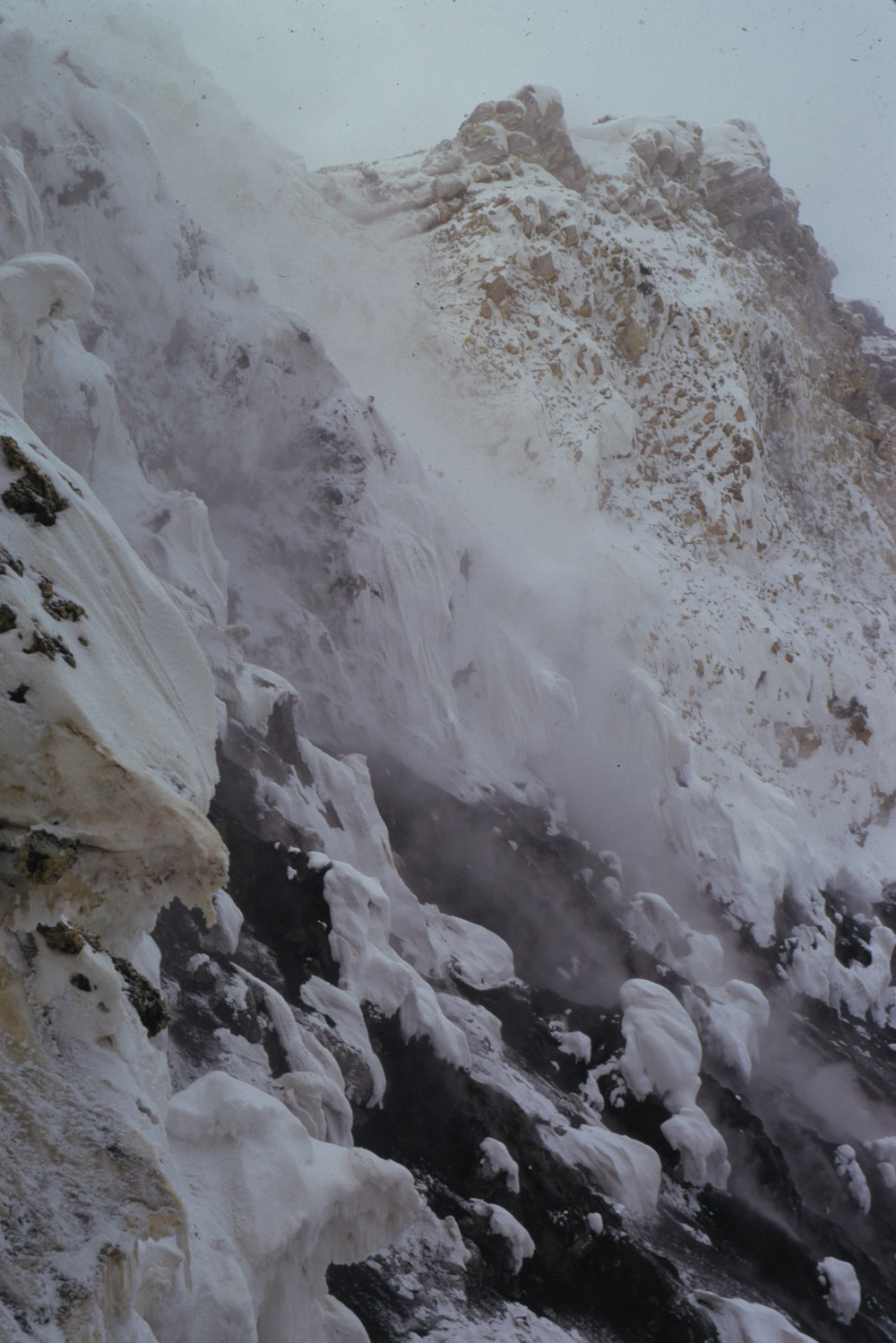 DescriptionMain Crater wall from bottom of ladderPhotographerHarry KeysSeason1974-1975Date Taken1974-1975 SeasonOriginalSlideLocationMount ErebusGeolocation[1] Position