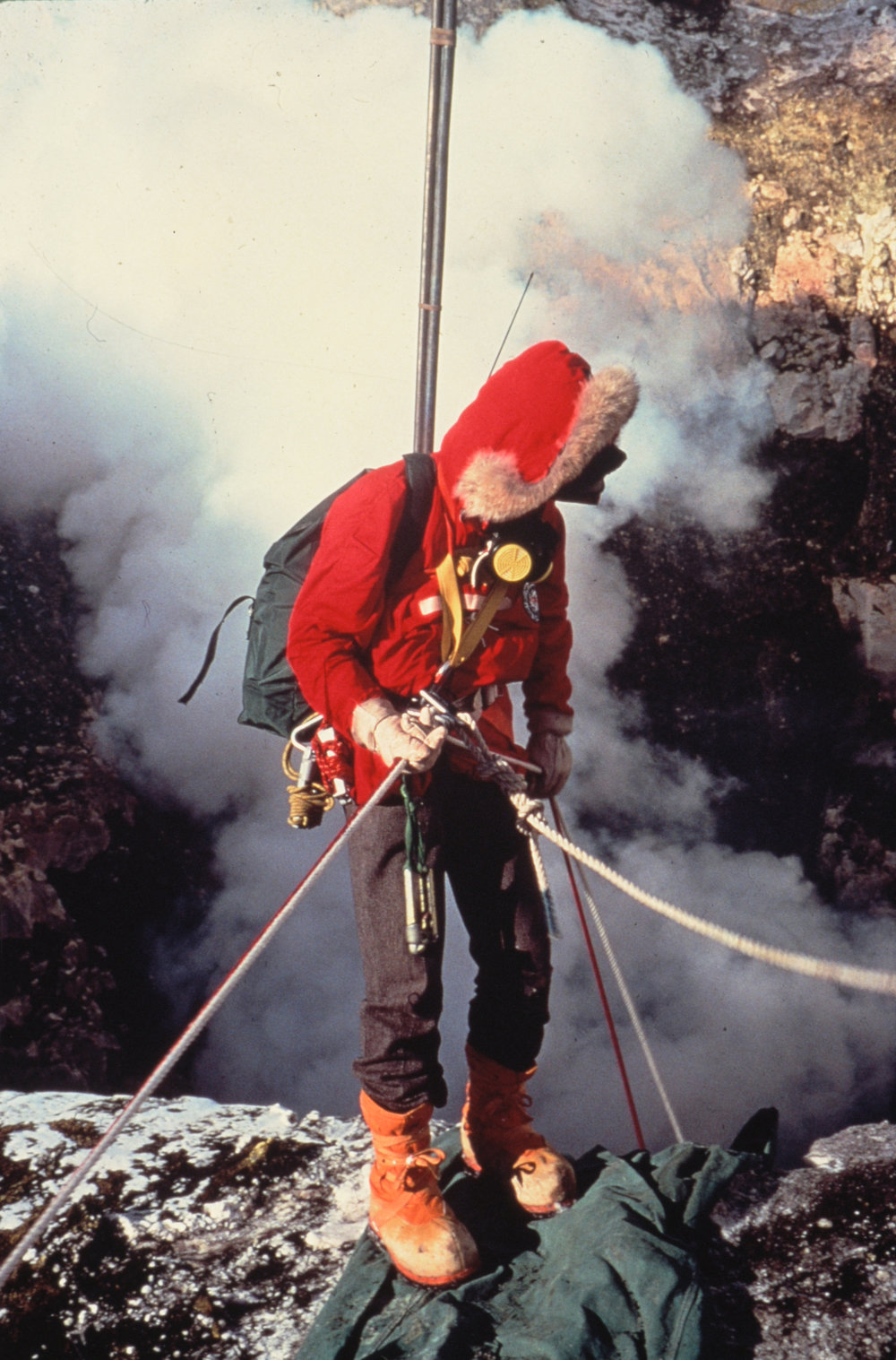 DescriptionWerner Giggenbach about to step into the inner craterDepictsWerner GiggenbachSeason1978-1979Date Taken1978-1979 SeasonOriginalSlideNo. People1LocationMount ErebusGeolocation[1] Position