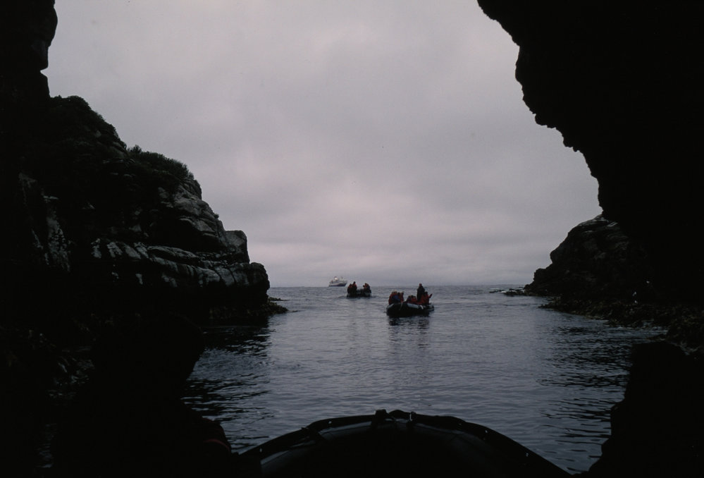 DescriptionZodiac Cruising on Snares Island.PhotographerNicola HolmesSeason1992-1993Date TakenBetween 1st January 1993 and 31st January 1993OriginalSlideNo. People2-5LocationSnares IslandGeolocation[1] Position