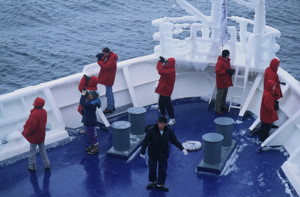 DescriptionPassengers and Cameras on Frontier Spirit.PhotographerGillian WrattSeason1992-1993Date TakenBetween 1st February 1993 and 28th February 1993OriginalSlideNo. People5-10