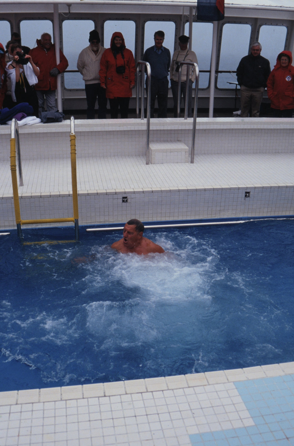 DescriptionIn the Pool - Polar Plunge.PhotographerGillian WrattSeason1992-1993Date TakenBetween 1st February 1993 and 28th February 1993OriginalSlideNo. People>10