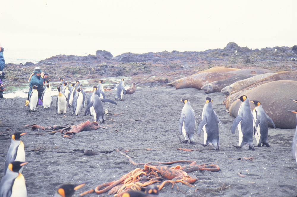 DescriptionPenguins, Tourists, and Elephant Seals.PhotographerGillian WrattSeason1992-1993Date TakenBetween 1st February 1993 and 28th February 1993OriginalSlideNo. People2-5LocationMaquarie IslandGeolocation[1] Position