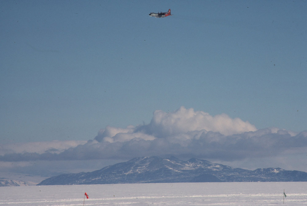 DescriptionHercules just after take off from Ice RunwayPhotographerM BradstockSeason1977-1978Date TakenBetween 1st January 1978 and 31st January 1978OriginalSlideLocationIce Runway