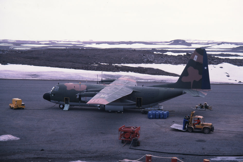 DescriptionChilean Air Force - C130PhotographerDavid GeddesSeason1988-1989Date TakenBetween 1st January 1989 and 31st January 1989OriginalSlideNo. People2-5LocationKing George IslandGeolocation[1] Position
