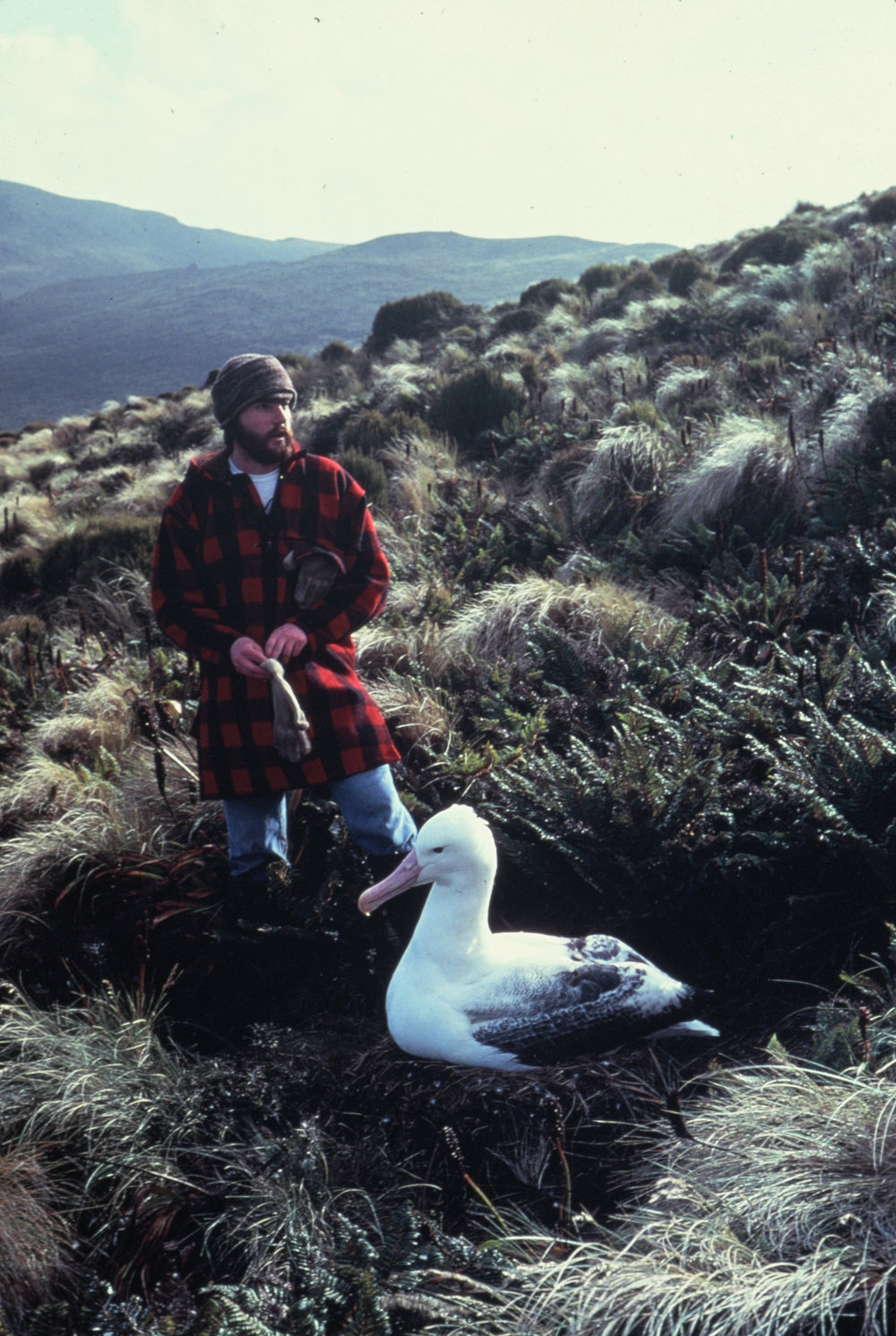 DescriptionAnimals, Royal Albatross and nest with researcherPhotographerR ClarkSeason1980-1981Date TakenBetween 1st January 1981 and 31st January 1981OriginalSlideNo. People1LocationCampbell IslandGeolocation[1] Position