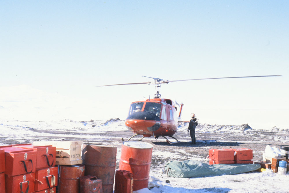DescriptionHelicopter at Scott BasePhotographerElizabeth BulleidSeason1980-1981Date Taken1980-1981 SeasonOriginalSlideNo. People1LocationScott BaseGeolocation[1] Position