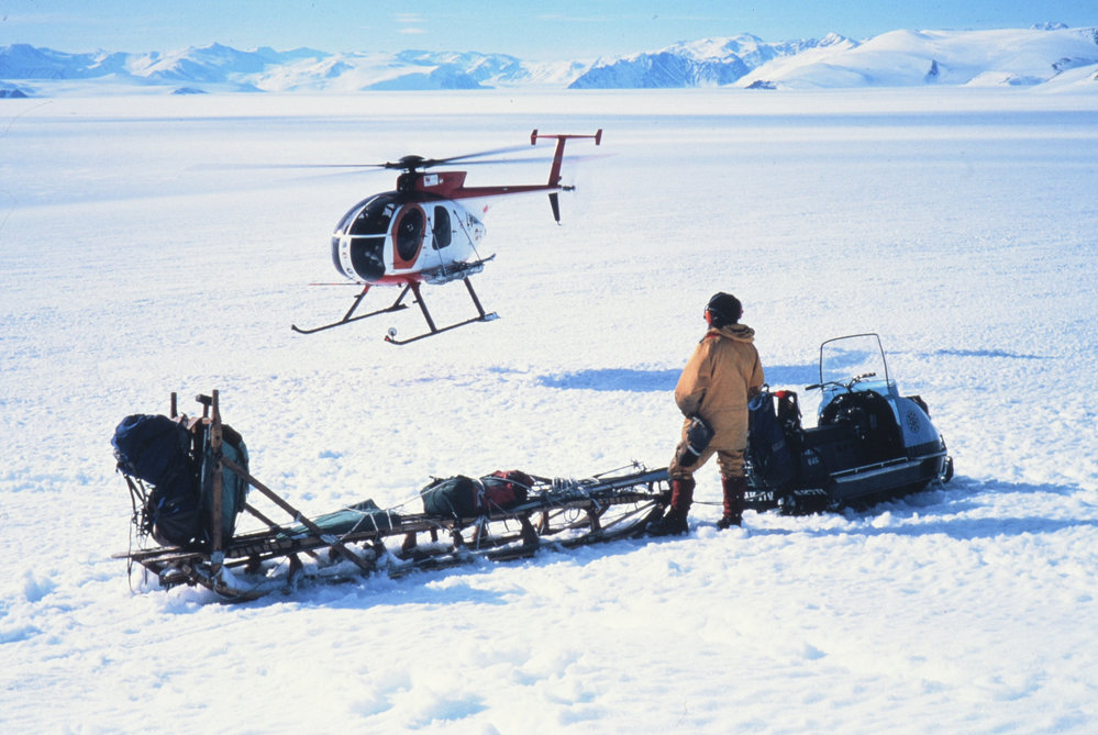 DescriptionGerman Antarctic North Victoria Land Expeditions (GANOVEX) visit, sled and snowmobilePhotographerShaun NormanSeason1982-1983Date Taken1982-1983 SeasonOriginalSlideNo. People1LocationMcMurdo SoundGeolocation[1] Position
