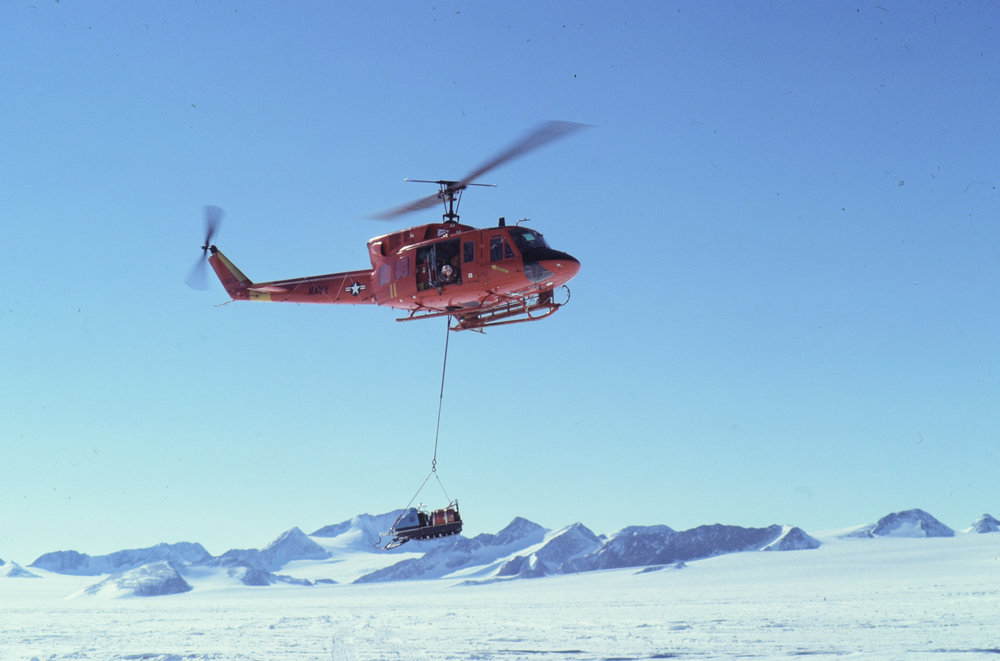 DescriptionHelicopter Sling Load North Victoria LandPhotographerEric SaxbySeason1981-1982Date Taken1981-1982 SeasonOriginalSlideLocationNorth Victoria LandGeolocation[1] Position