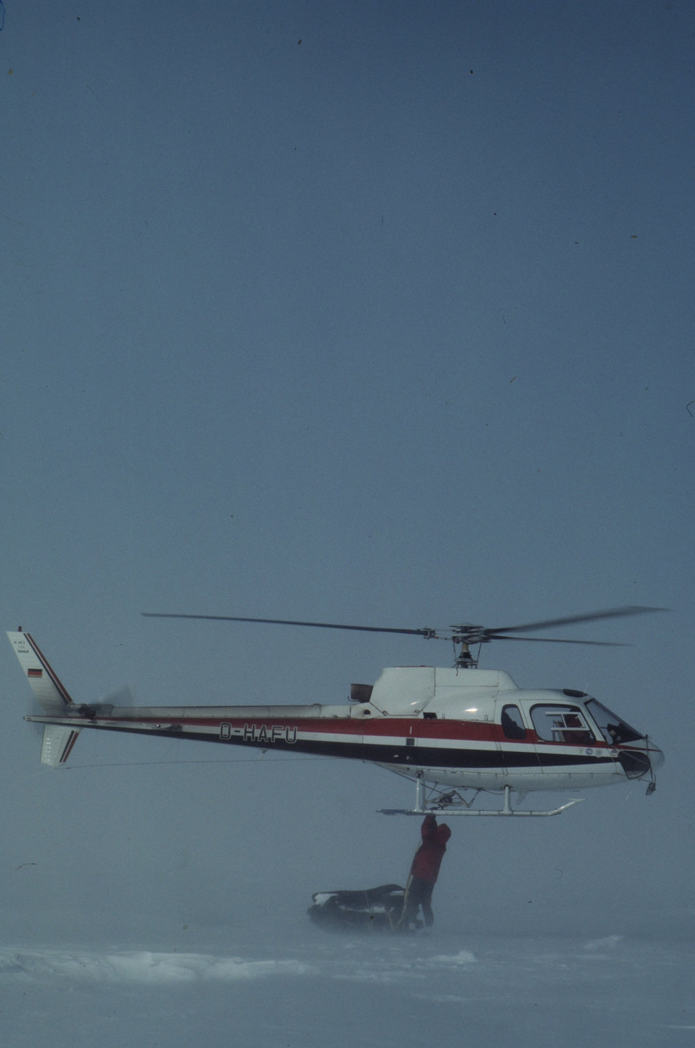 DescriptionPreparing to sling load on GANOVEX helicopterPhotographerJack McConchieSeason1984-1985Date Taken1984-1985 SeasonOriginalSlideNo. People1LocationNorth Victoria LandGeolocation[1] Position