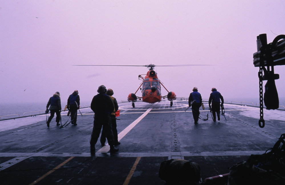 DescriptionCoastguard Helicopter landing on icebreakerPhotographerJanet BertaudSeason1988-1989Date Taken1988-1989 SeasonOriginalSlideLocationIcebreaker GlacierGeolocation[1] Position