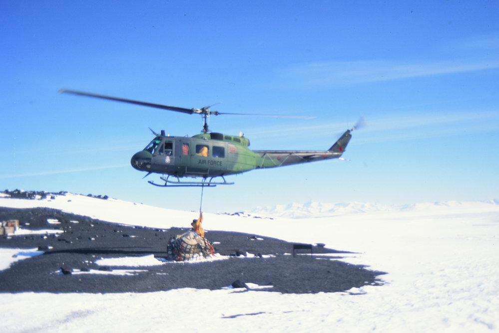 DescriptionNZ Helicopter at Cape EvansPhotographerKeith LyonsSeason1994-1995Date Taken1994-1995 SeasonOriginalSlideLocationCape EvansGeolocation[1] Position