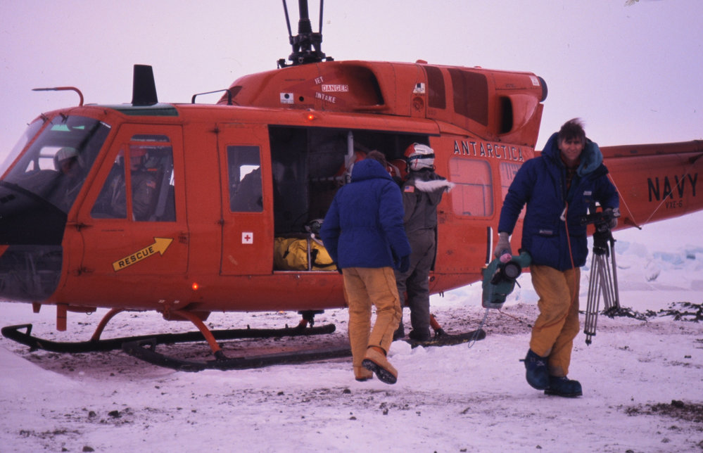 DescriptionUnloading US Helicopter at Scott Base, TVNZ director and cameramanDepictsMax QuinnPhotographerKim WesterskovSeason1991-1992Date Taken1991-1992 SeasonOriginalSlideNo. People2-5LocationScott BaseGeolocation[1] Position