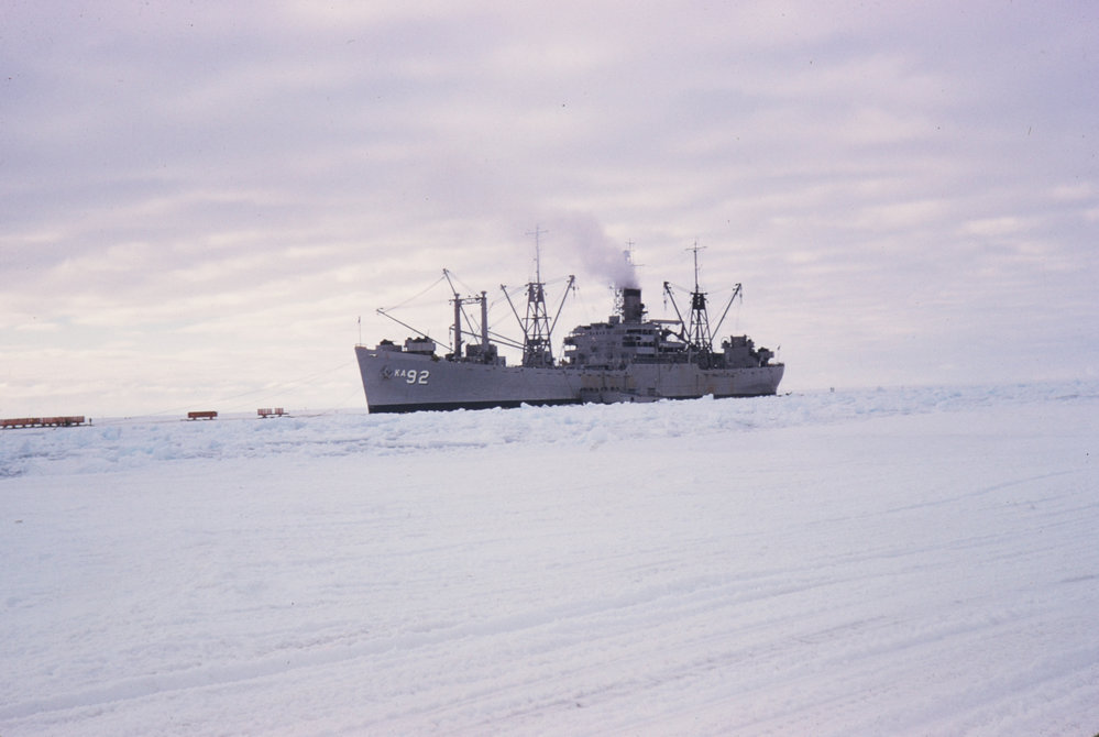 After establishing the base at "Little America", Wyandot returned home and operated with the Atlantic Fleet into the late 1950s.(Wikipedia)ProgrammeTrans Antarctic ExpeditionSeason1956-1958Date Taken1956-1958 SeasonOriginalSlideLocationMcMurdo SoundGeolocation[1] Position