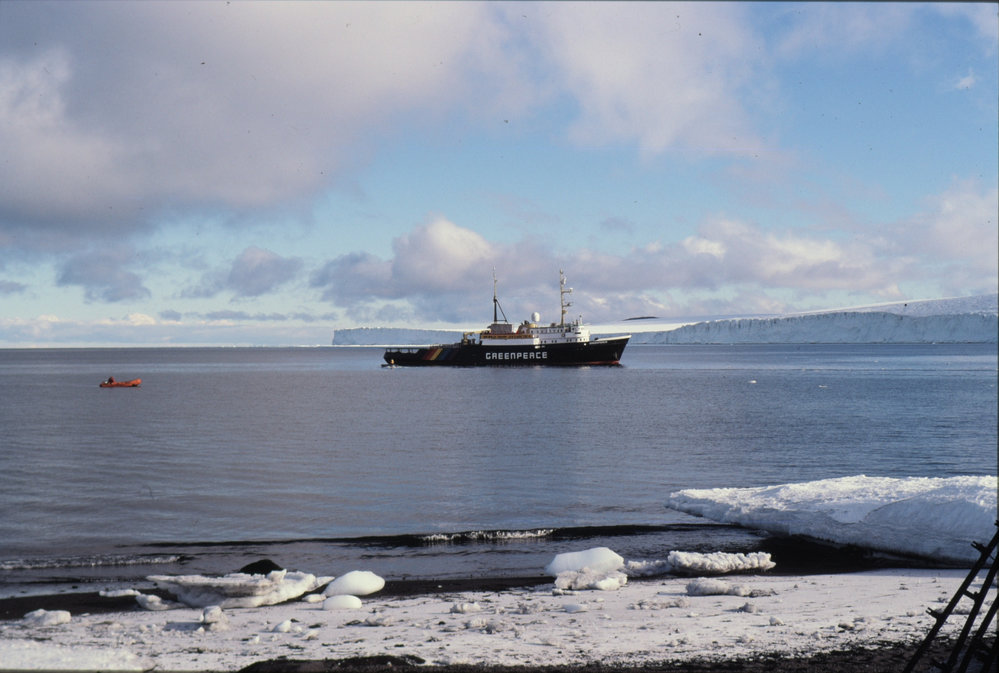 DescriptionGreenpeace off Cape EvansPhotographerS CooperSeason1986-1987Date Taken1986-1987 SeasonOriginalSlideLocationCape EvansGeolocation[1] Position