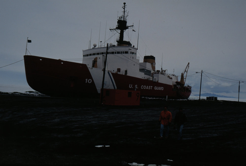 DescriptionUSCGC Polar Star at McMurdo ice wharfPhotographerKeith LyonsSeason1994-1995Date Taken1994-1995 SeasonOriginalSlideNo. People2-5LocationMcMurdo StationGeolocation[1] Position