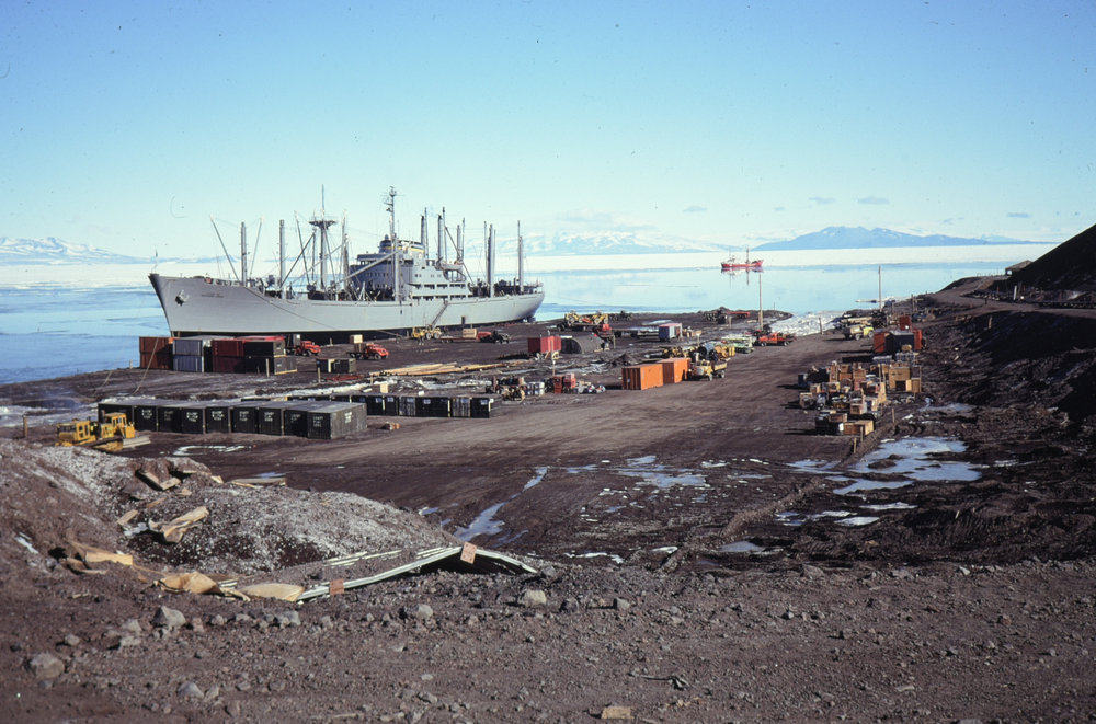 McMurdo Wharf Operations, McMurdo Sound in background