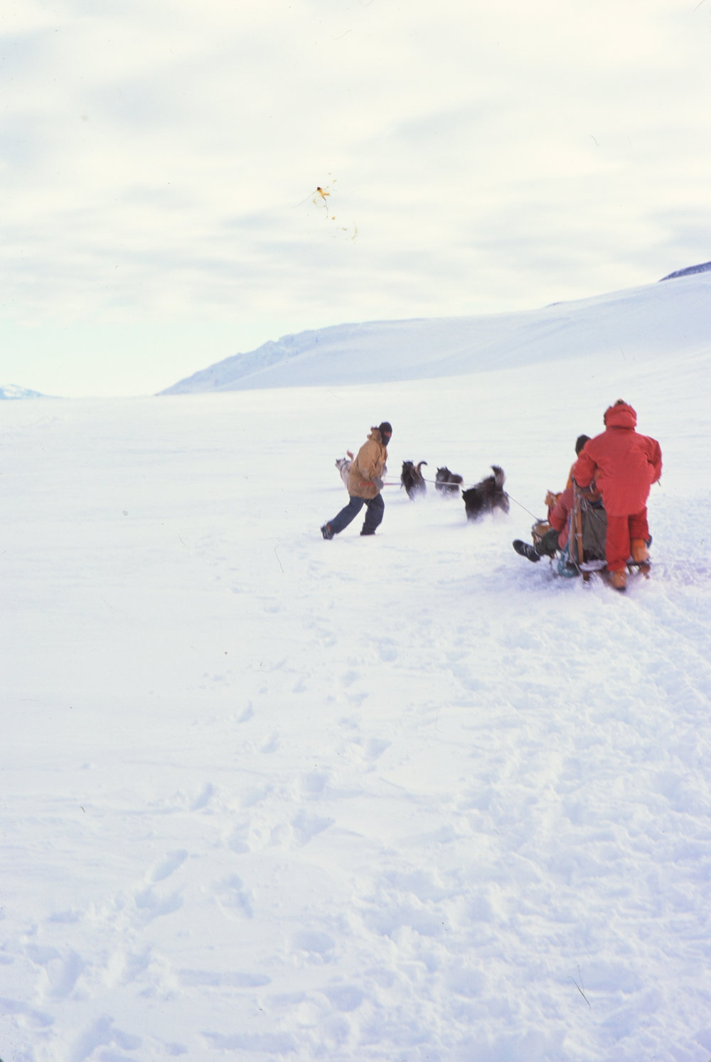 DescriptionDog Sledge Setting OffPhotographerM BradstockSeason1977-1978Date TakenBetween 1st November 1977 and 30th November 1977OriginalSlideNo. People2-5