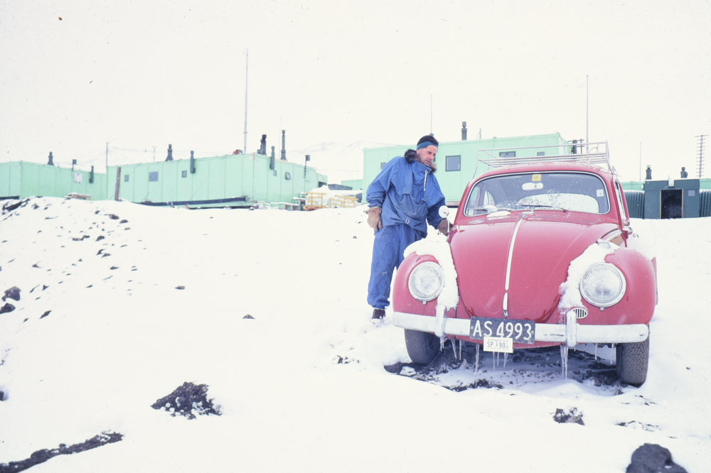 DescriptionLeader by VW Beetle at Scott BaseDepictsColin ClarkePhotographerJ MurphySeason1966-1967Date Taken1966-1967 SeasonOriginalSlideLocationScott BaseGeolocation[1] Position