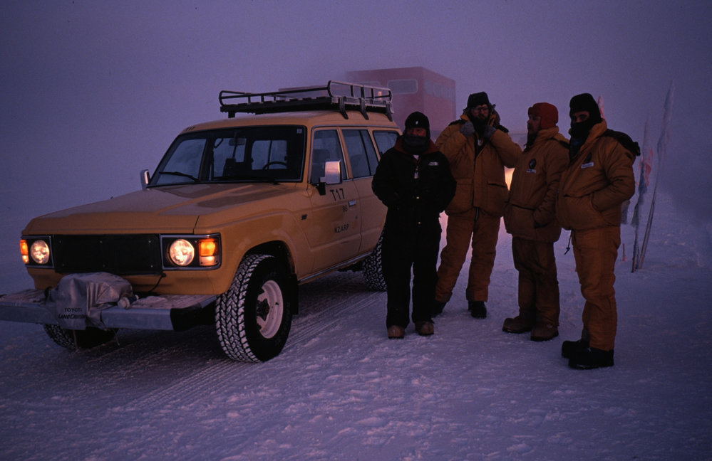 DescriptionOn Willies Field Road. Winfly 1990. Ground Fog Temp -40 to -50c. Nelson, MacFarlane, Pringle, Were.DepictsMalcolm MacFarlaneAlister Pringle PhotographerKim WesterskovSeason1989-1990Date TakenBetween 1st January 1990 and 31st December 1990OriginalSlideNo. People2-5LocationWillies Field Road