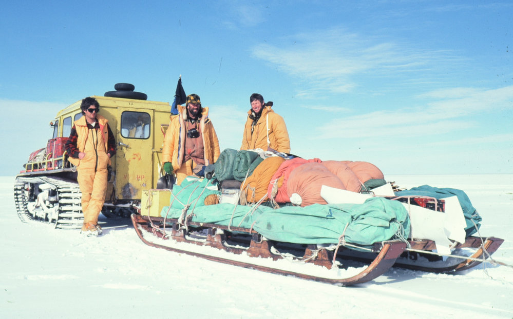 Geophysics team leaving for the field - Windless Bight. Sno trac and Mandheim sledge