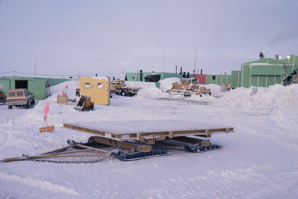 DescriptionCantago Sledge in front of Scott BasePhotographerG HalliganSeason1981-1982Date Taken1981-1982 SeasonOriginalSlideLocationScott BaseGeolocation[1] Position