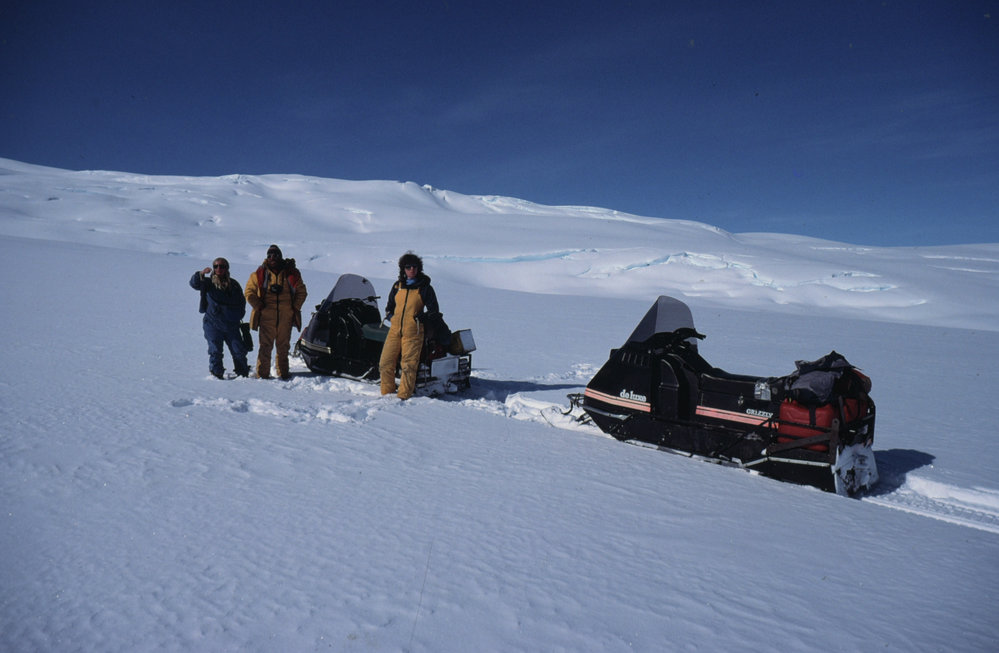 Skidoos on Aurora Glacier.