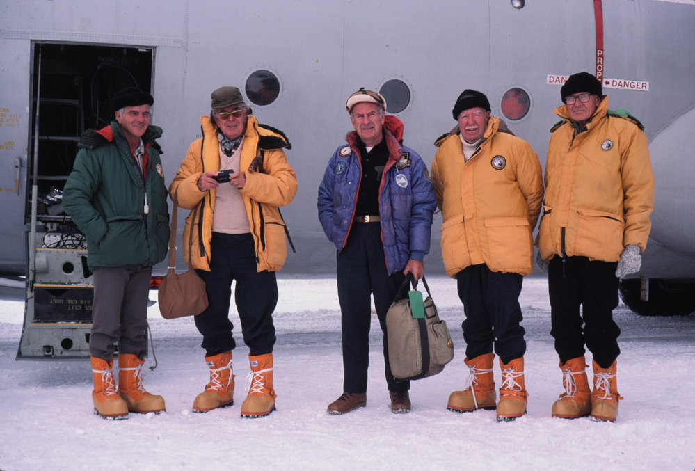 Keith Clegg, Lord Shackleton, Robert Baden Thomas, Frank O'Flynn and Lord Elworthy on arrival at McMurdo. Antarctica NZ, accessed 19/03/2026, https://adam.antarcticanz.govt.nz/nodes/view/24190