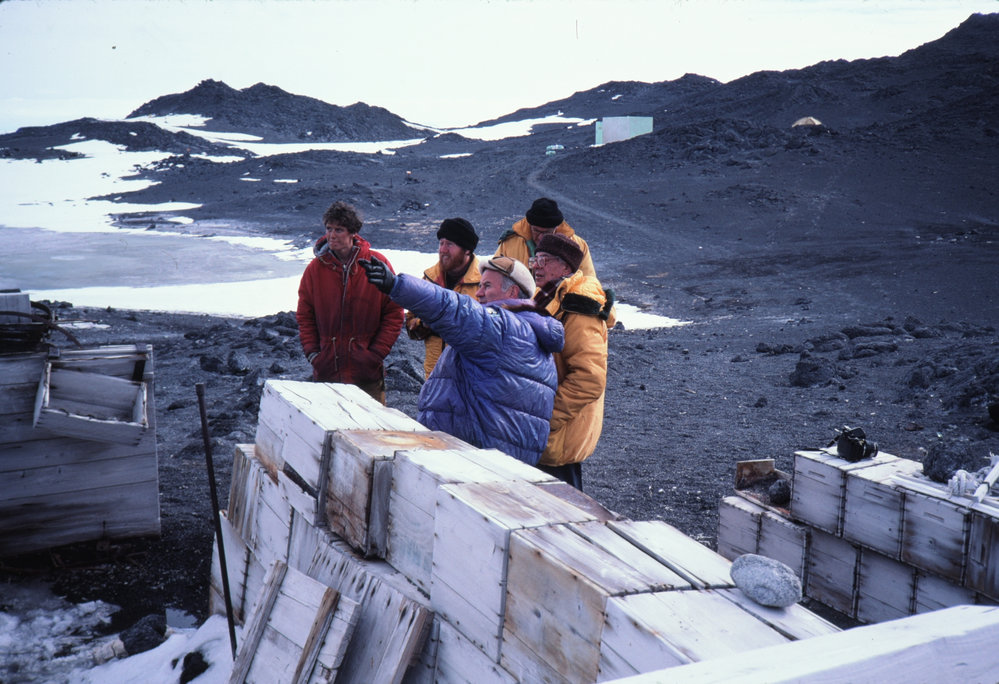 Robert Baden Thomas showing a USARP member, Lord Elworthy and Lord Shackleton around Cape Royds. Antarctica NZ, accessed 19/03/2026, https://adam.antarcticanz.govt.nz/nodes/view/24194