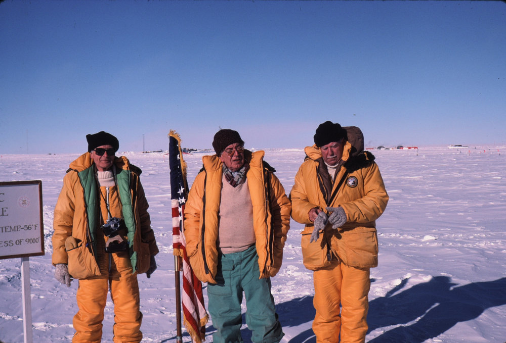 DescriptionLord Shackleton and Lord Elworthy with Frank O'Flynn at the South PoleDepictsLord ShackletonLord ElworthyFrank O'FlynnPhotographerPeter CresswellSeason1985-1986Date TakenBetween 1st November 1985 and 30th November 1985OriginalSlideNo. People2-5LocationSouth PoleGeolocationPosition:StreetView:&enabled=0&fov=90&heading=0&pitch=0&zoom=6
