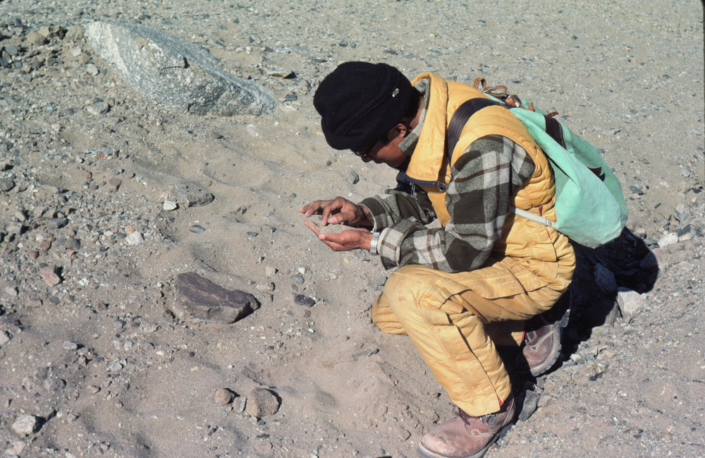 Chinese guest scientist, Zhang Fu Yuan examines sand sample from creek draining Lake Thomas. Antarctica NZ, accessed 09/04/2026, https://adam.antarcticanz.govt.nz/nodes/view/24207