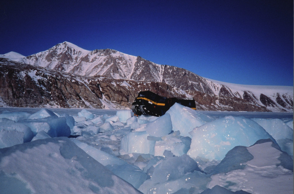 DescriptionCape Roberts Project: Hagglunds on Ice blockPhotographerJeremy Ridgen ProgrammeK001EventK001-9697Season1996-1997Date Taken1996-1997 SeasonOriginalSlideLocationMackay GlacierGeolocation[1] Position