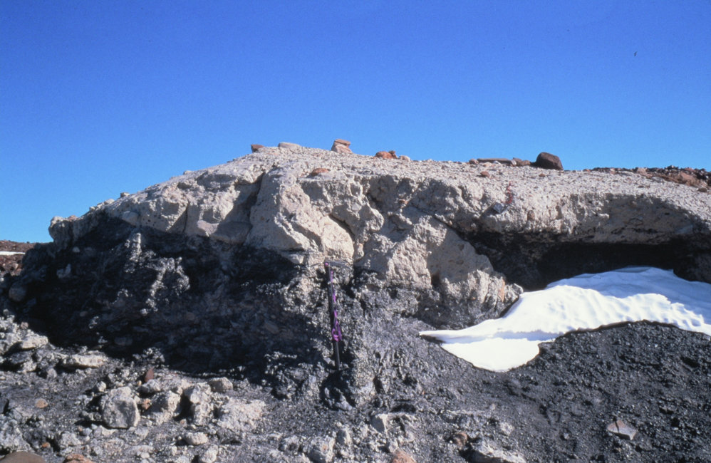 DescriptionEvidence of Glacial Shearing in the Sirius Group with an Ice-Axe for Scale.PhotographerPhil HolmeProgrammeK042EventK042-9900Season1999-2000Date Taken1999-2000 SeasonOriginalSlide