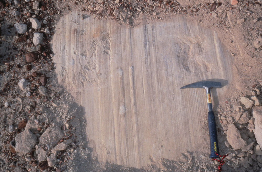 DescriptionSmall glacially abraded patch of sandstone- in Trudge Valley showing ice flow from top to bottomPhotographerPhil HolmeProgrammeK042EventK042-0001Season2000-2001Date Taken2000-2001 SeasonOriginalSlideLocationTrudge ValleyGeolocation[1] Position