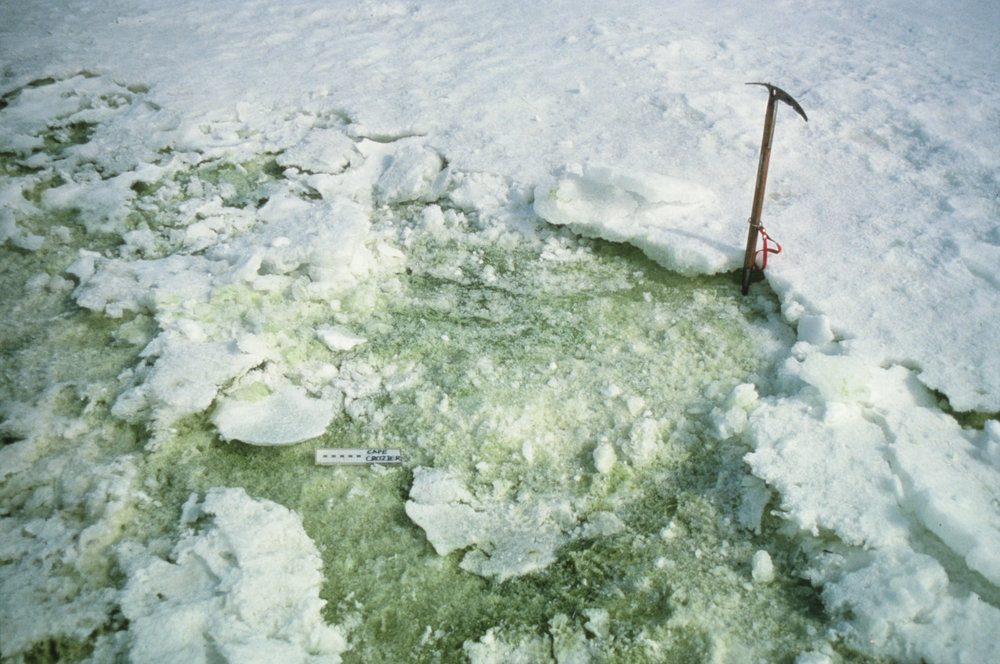 DescriptionGreen snow algae on nutrient-enriched snow close to Adelie Penguin RookeryPhotographerPaul BroadyProgrammeK053EventK053-8485Season1984-1985Date Taken1984-1985 SeasonOriginalSlideLocationCape CrozierGeolocation[1] Position