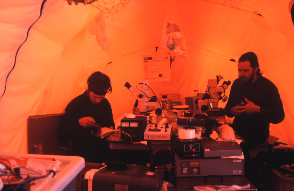 DescriptionInside the laboratory tentProgrammeK140EventK140-0203Season2002-2003Date Taken2002-2003 SeasonOriginalSlideNo. People2-5LocationCape HallettGeolocation[1] Position