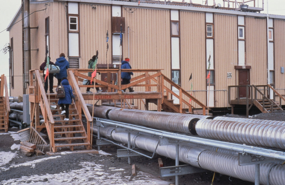 DescriptionWalkway over ducting at McMurdoPhotographerChris ArcusProgrammeK391EventK391-0102-CSeason2001-2002Date Taken2001-2002 SeasonOriginalSlideNo. People5-10LocationMcMurdo StationGeolocation[1] Position