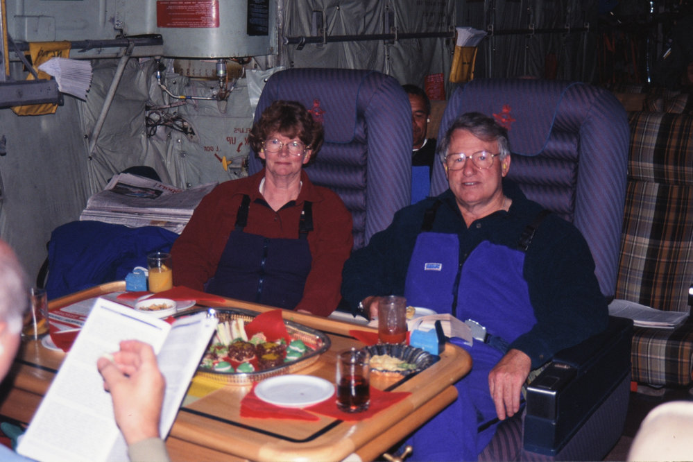 Description40th Anniversary of Scott Base: Jim and Joan Bolger on the PlaneDepictsJim BolgerJoan Bolger PhotographerTim HighamProgrammeK392EventK392-9697Season1996-1997Date Taken1996-1997 SeasonOriginalSlideNo. People2-5