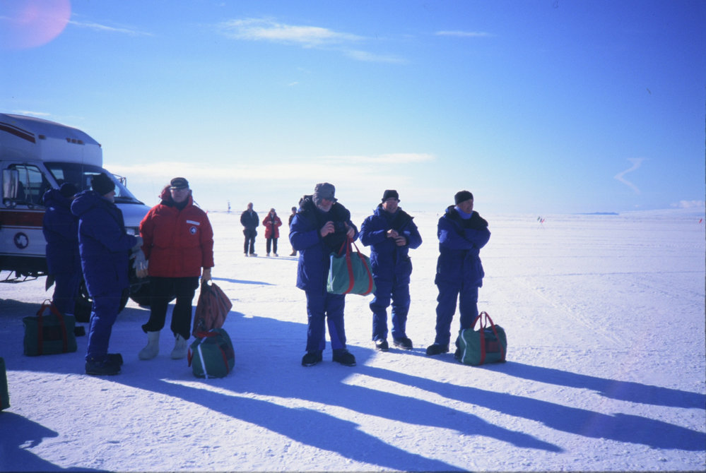 DescriptionWaiting on the seaice runwayPhotographerRob OrchistonSeason1996-1997Date Taken1996-1997 SeasonOriginalSlideNo. People2-5LocationMcMurdo SoundGeolocation[1] Position
