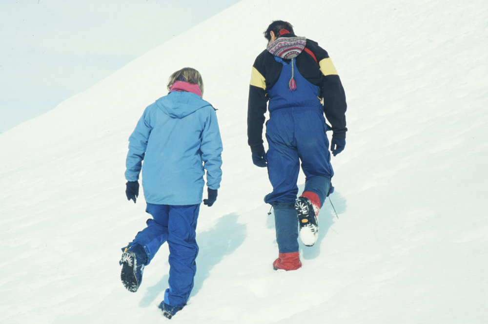 Kicking toes in to walk up a slope - no ice axe