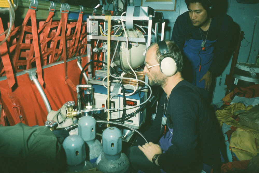 Ross Martin and Anthony Gomez air sampling in a Starlifter