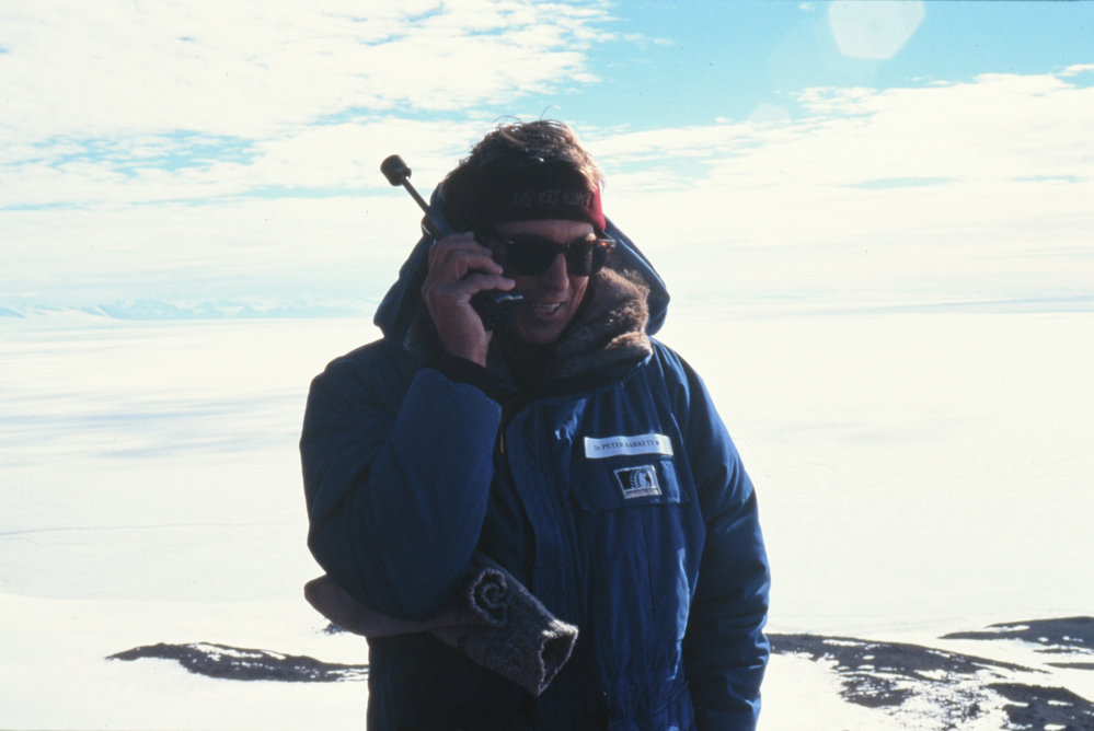 Peter Barrett on Iridium phone. Ministerial on ice
