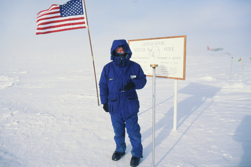 Poet Bill Manhire at Geographic South Pole