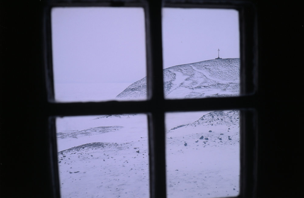 DescriptionView of Vince's Cross from interior of Discovery HutPhotographerRaewyn AtkinsonProgrammeK349EventK394-0001-BSeason2000-2001Date Taken2000-2001 SeasonOriginalSlideLocationHut PointGeolocation[1] Position