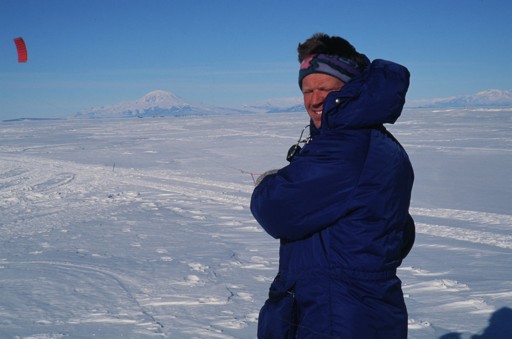 Colin Fox (K131) flying a kite, Mt Discovery in the background. Antarctica NZ, accessed 13/04/2026, https://adam.antarcticanz.govt.nz/nodes/view/27300
