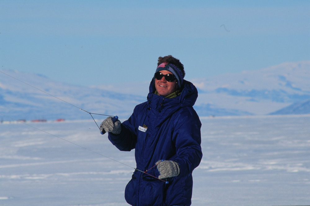 Colin Fox (K131) flying a kite, Mt Discovery in the background. Antarctica NZ, accessed 13/04/2026, https://adam.antarcticanz.govt.nz/nodes/view/27301